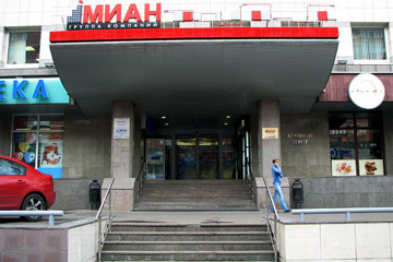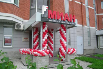 Оформление входных групп в офисы продаж компании «МИАН». Основа вывесок — композитный материал (алюкобонд). Буквы и логотип компании выполнены объемными элементами с внутренней подсветкой неоном. Заказчик: «МИАН»