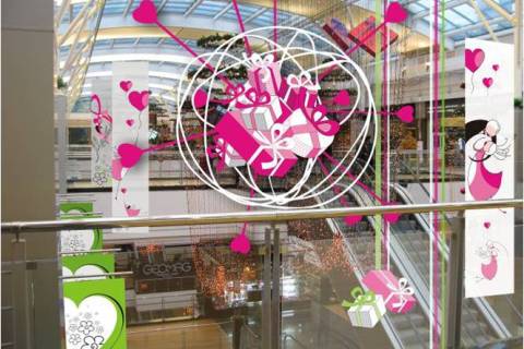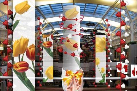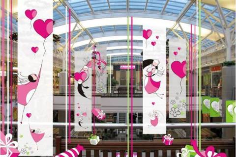 - Seasonal decoration of shopping centers. St. Valentin's day